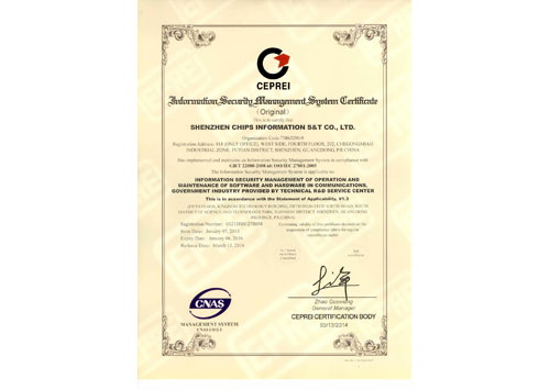 信息安全管理體系認(rèn)證證書(正本英文)