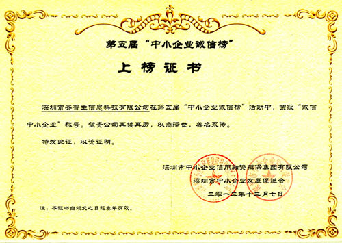 誠(chéng)信中小企業(yè)證書
